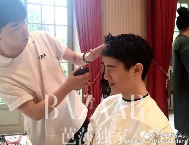 化妆的时候还不忘调戏新郎,感觉胸肌分分钟喷涌而出~