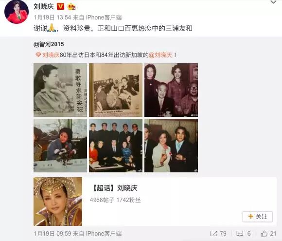 除了年轻时候的刘晓庆,其中还有刘晓庆与三浦友和的合影,刘晓庆自己也转发:“资料珍贵。正和山口百惠热恋中的三浦友和”。