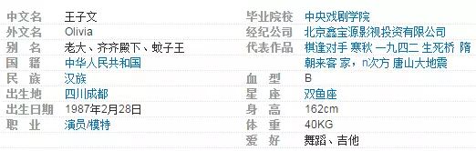 其实相对于她的身高年龄,她的感情史更惹人关注。毕竟身高年龄有出入的女星一大把,但能和王朔扯上绯闻的,除了徐静蕾,也只有王子文了。