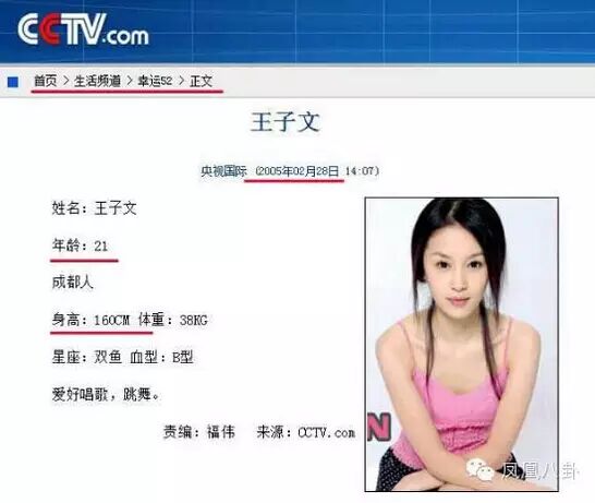 王子文曾在2005年参加过一期央视的《幸运52》,当时在嘉宾资料中写的21岁,所以可以推断王子文应该是1984年出生,并非百科里的1987年。