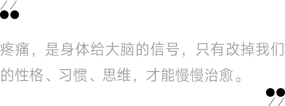 长期的身体疼痛,让她主动选择了暂停,选择“上山”治疗,开始了自我疗愈的旅途。“疼痛,是身体给大脑的信号,只有改掉我们的性格、习惯、思维,才能慢慢治愈”。