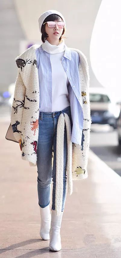 一个温暖的高领毛衣,加上一条破洞牛仔裤,破洞的位置至少要在膝盖以上,里面可以加上一条隐形的“秋裤”,毕竟抗寒很重要。
