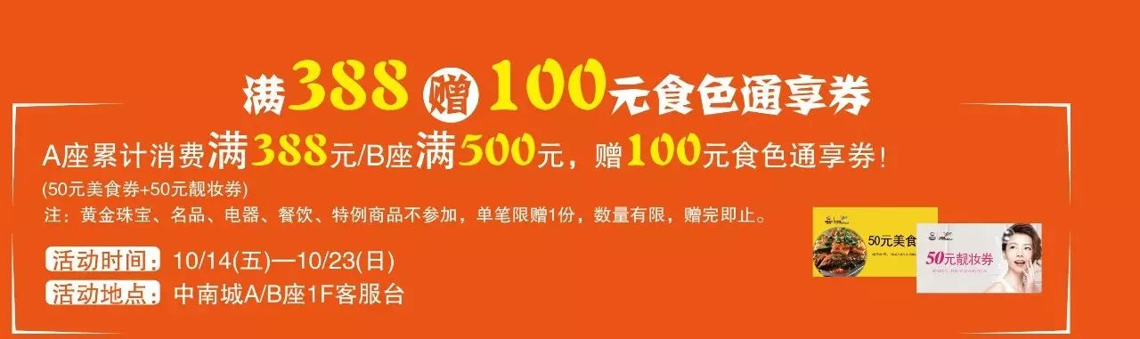 满388元还有100元食色通享券拿