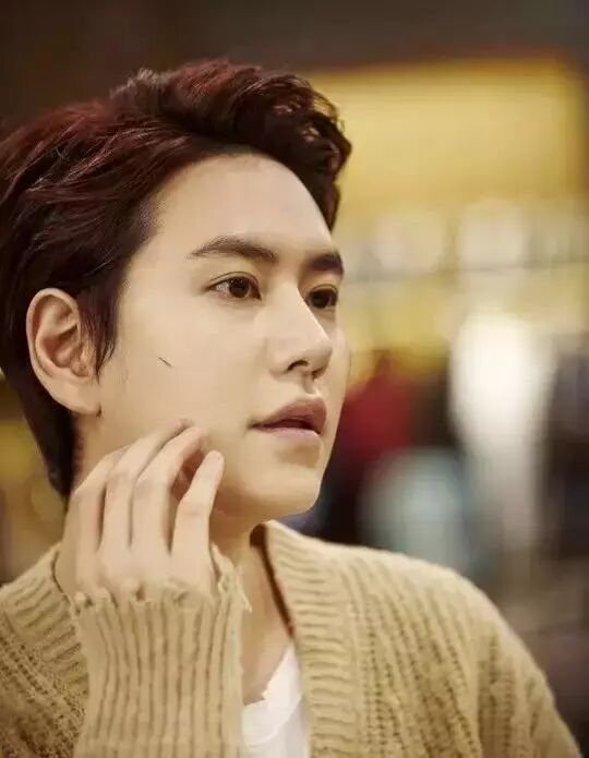 圭贤的这个发型带有一点卷度,