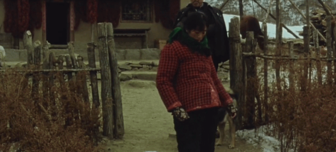 ▲大雪天走路打滑,秋菊挺着大肚子,走路两腿岔开,滑稽的像个鸭子