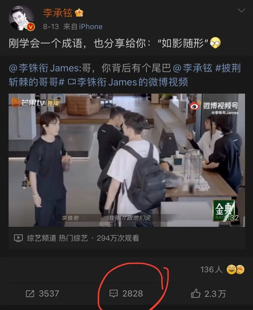 虽然当年没凭借带娃综艺红起来,但是老天还是补了李承铉一个好机会,今年芒果台的综艺《披荆斩棘的哥哥》让李承铉一上来就火出圈了。