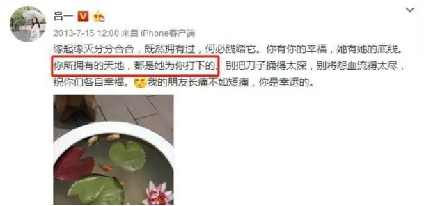 事后女方好友吕一疑似对李承铉喊话,她发了一个挺值得玩味的微博。