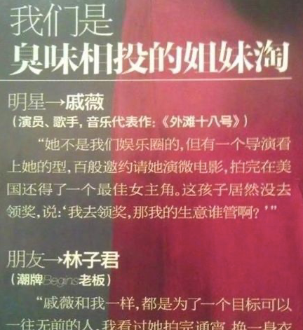 2012年林子君过生日,戚薇也大方送祝福,祝她的潮牌生意兴隆,看得出来关系很不错。