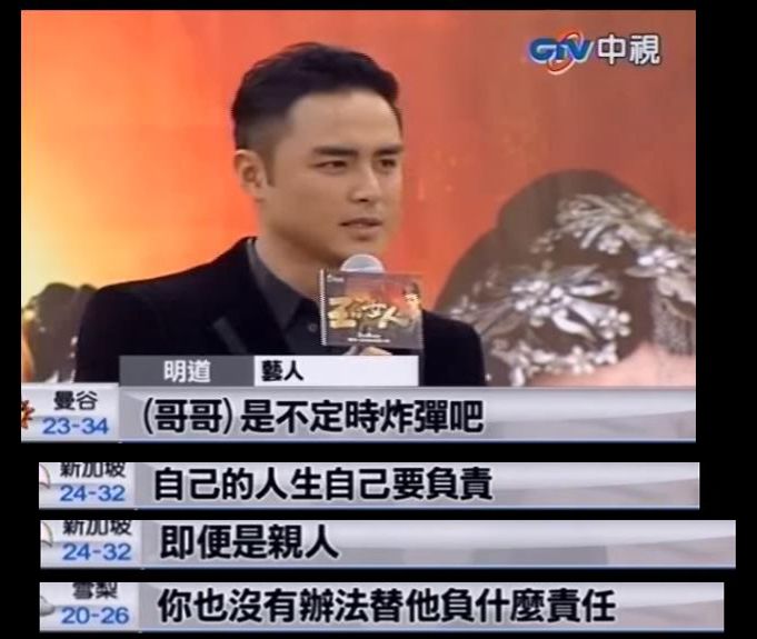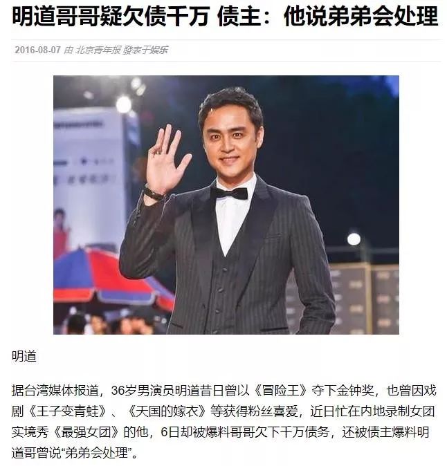 明道的哥哥第一次被爆出欠债,还是在明道退伍后,参加新剧发布会的时候。