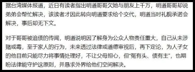 当然,虽然明道嘴上说着“不帮哥哥”,私底下却还是将这些债务还清。