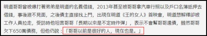 面对哥哥的利用,明道坦言:哥哥就是个不定时炸弹,就是个无底洞。
