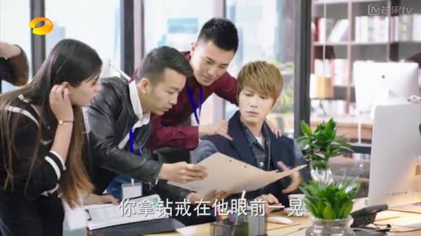陈学冬进办公室的第一天,导演就用了一个长镜头表现了他的聪明。一进门,帮正在自拍的女同事打光,先用台灯,再用白纸,这也忒专业了!
