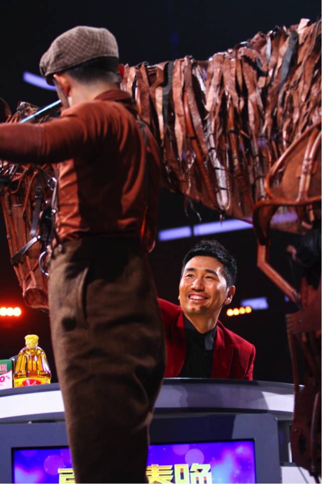 2015年大受追捧的舞台剧《战马》,在表演中仅演绎了其中部分片段就将主角战马乔伊活灵活现地展示在舞台上,演员跟木偶马达到了“人马合一”的惊艳效果。表演结束,战马乔伊还深入评审席,与每位评审来了个亲密接触,其憨态可掬不仅征服了现场观众,也征服了每一位评审,最终成功入选猴年春晚候选节目名单。