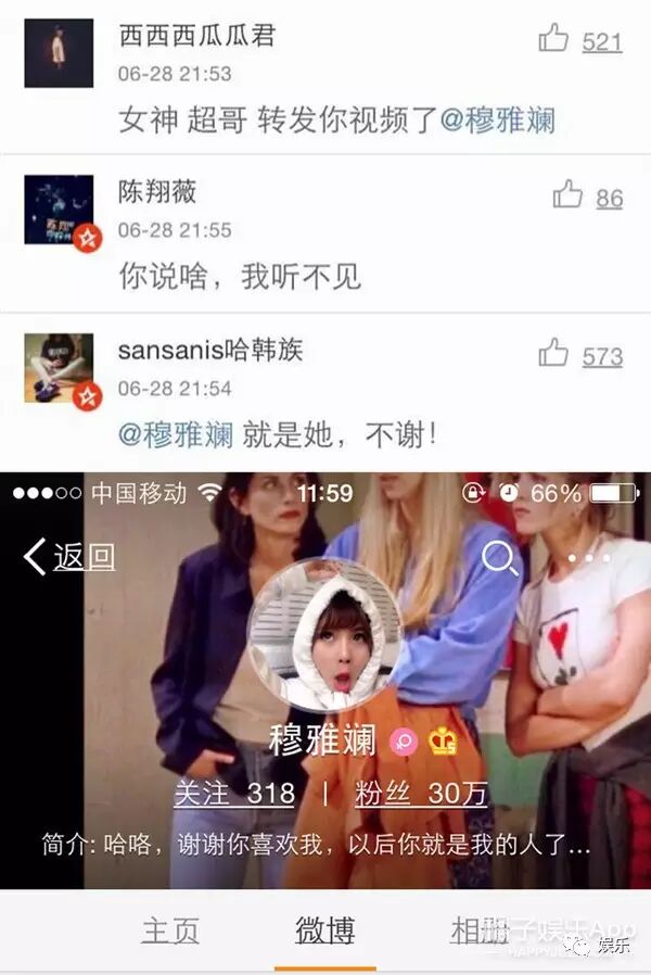 于是当时万能的网友们纷纷留言,几分钟内就帮超哥找到了这个神奇的妹子@穆雅斓
