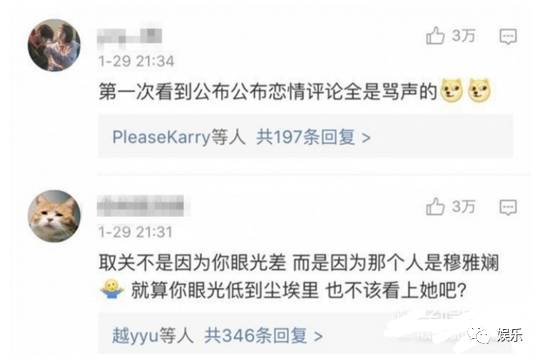 可是跟以往的恋情公布不一样,俩人似乎并不被网友看好,评论里都是清一色的,额...你们自己看↓