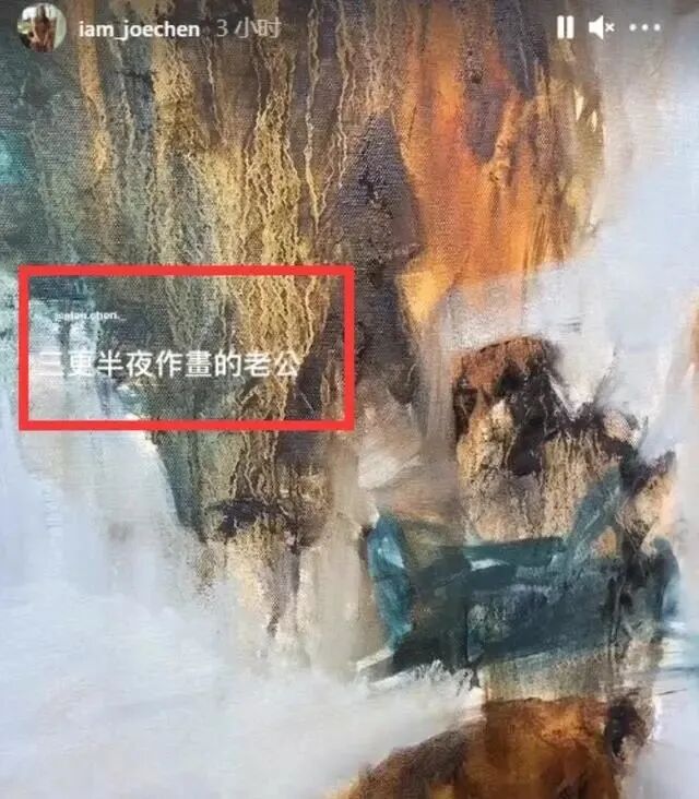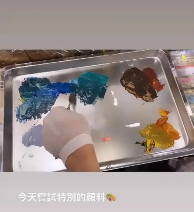 陈乔恩在这段视频中录下了艾伦调颜料的瞬间,还录下了他打造出的画,而在这段视频中,陈乔恩这回配上的文字成为了最大亮点!