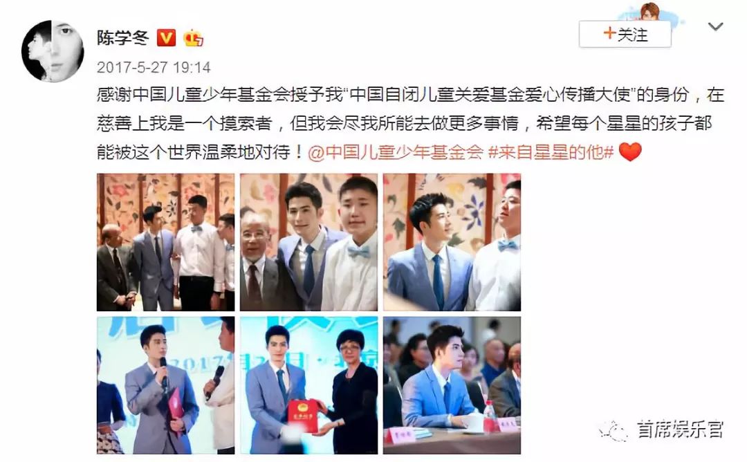 这些年,陈学冬发展地越来越强大,也利用自己的力量做了很多次公益,捐建图书馆、关注自闭症儿童、支持星宝贝计划......他在节目中表达了自己的态度:“只有我强大了以后,看到身边那些可怜的人才可以去帮助他们。"