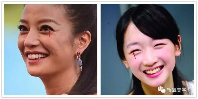 在生活中,大家都喜欢爱笑的人,会显得性格很好接近。但有些人笑起来,肌肉运动好像很活跃,像下图赵薇和周冬雨,眼角下有一块肌肉在向上挤压,这样很容易有皱纹,年纪大了以后特别明显。
