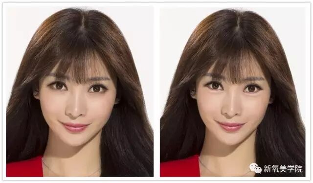 下眼睑的线条也会在一定程度上影响我们对于眼睛走势的判断。比如说柳岩的原本是直线,改成曲线会显得柔和。