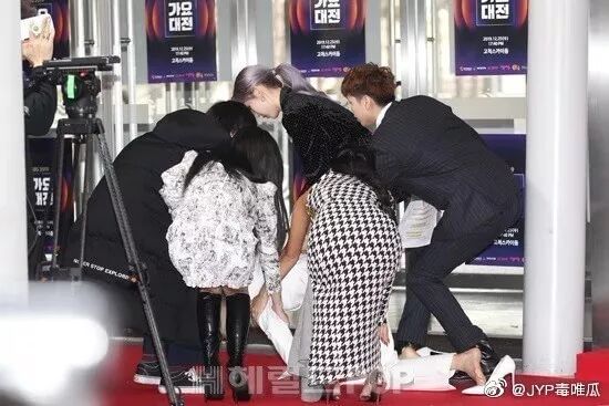 一波未平一波又起,到了红毯阶段,MAMAMOO金容仙也在红毯上摔倒,送往医院,也取消了舞台。
