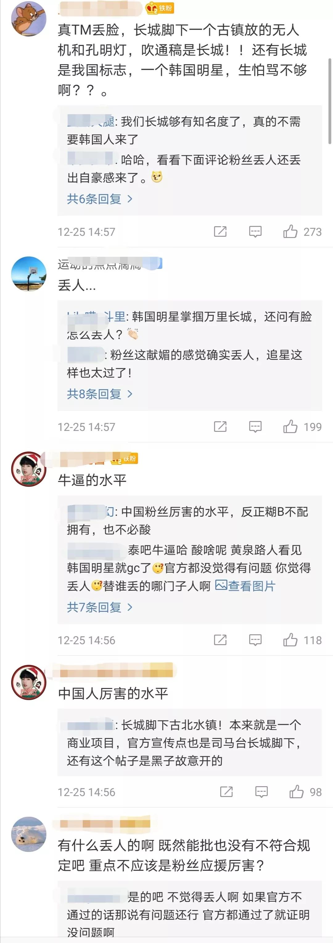 你现在搞应援,又是万里长城给你们爱豆应援,网友们就看不下去了,双方就各执一词,也不是网友敏感,当初韩国能拍出那种广告,就证明他们也这么觉得的啊。