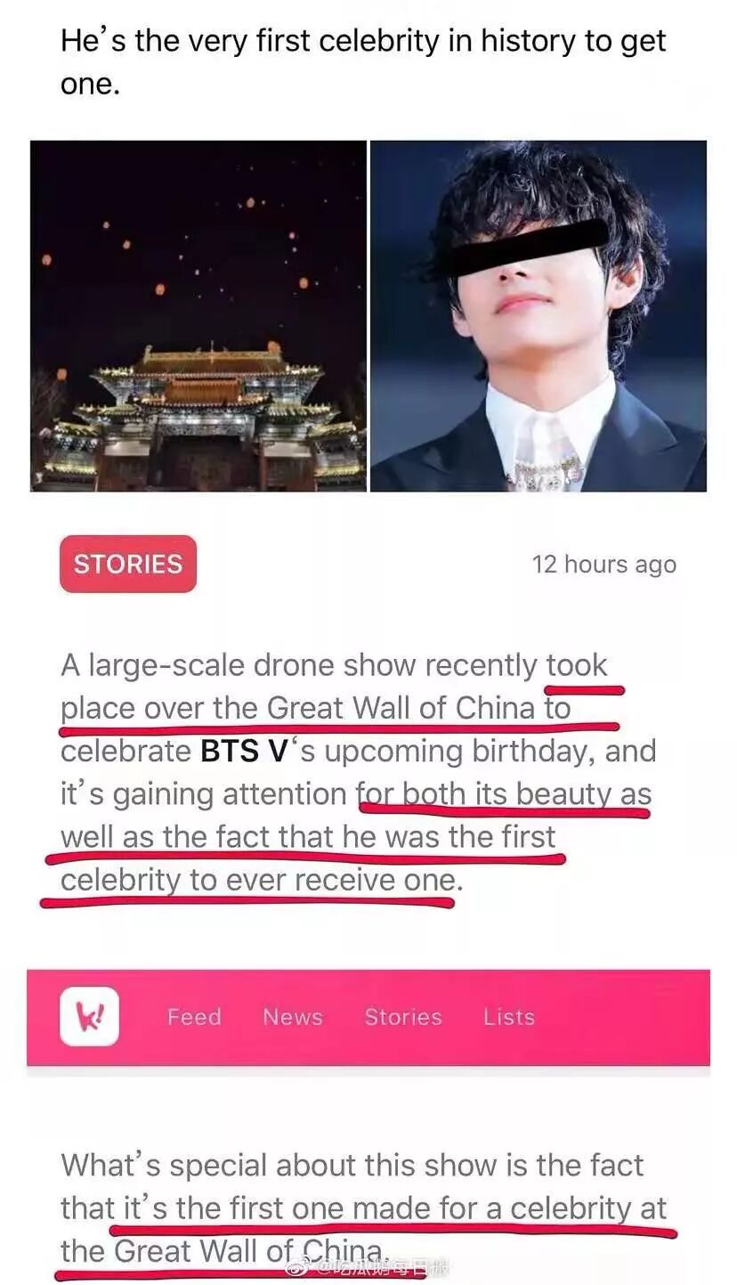 最近吧,防弹少年团的金泰亨吧给他们做了个应援,就是在长城脚下一个古镇搞了一个无人机的应援,看起来就很高大上。