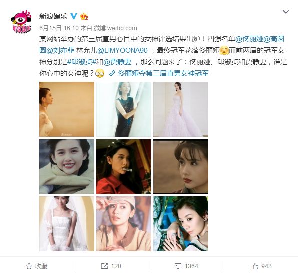 即使结婚后处于半隐退状态,每年的宅男女神投票她也总会出现在榜单前列。