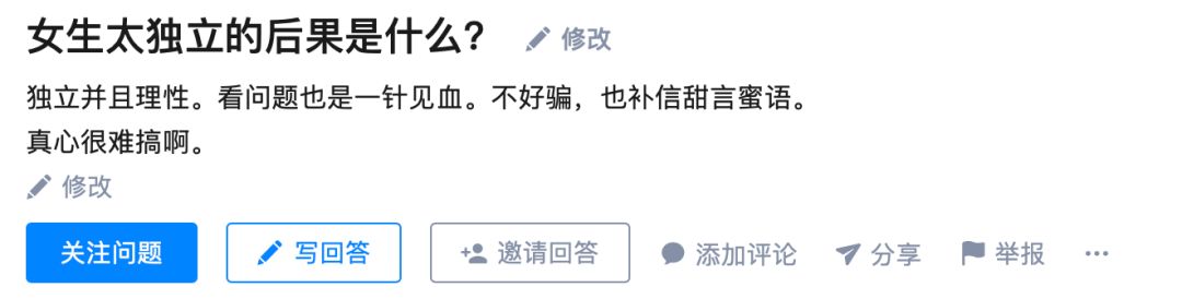 在知乎上搜索“女生独立”,你总是能看到很多充满困惑的提问。