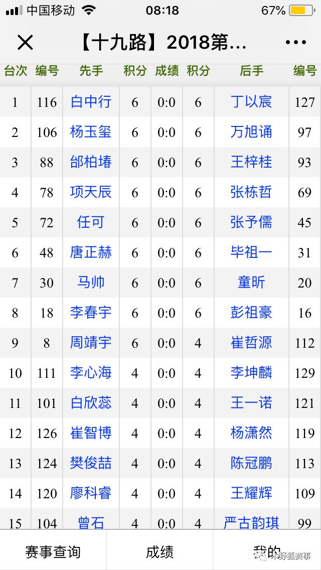 夺冠呼声较高的方箐峣和尹成志都顺利过关,尹成志第三轮遭遇哈尔滨强敌张峻晨,方箐峣战胜重庆最厉害的杨思晨。