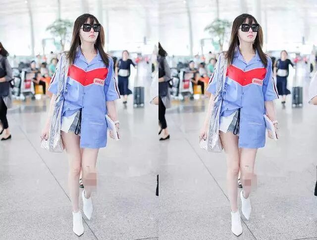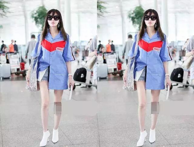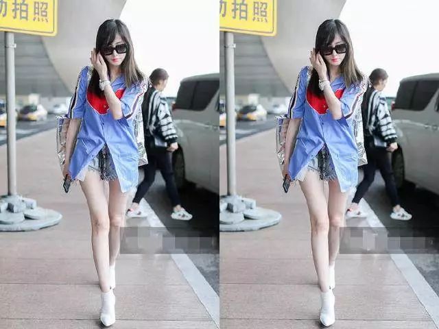 5月17日,张天爱现身北京机场。张天爱长发飘飘,反穿穿短裤配土气蓝色衬衫,玩下衣失踪秀2米长腿,真是有点猛了。