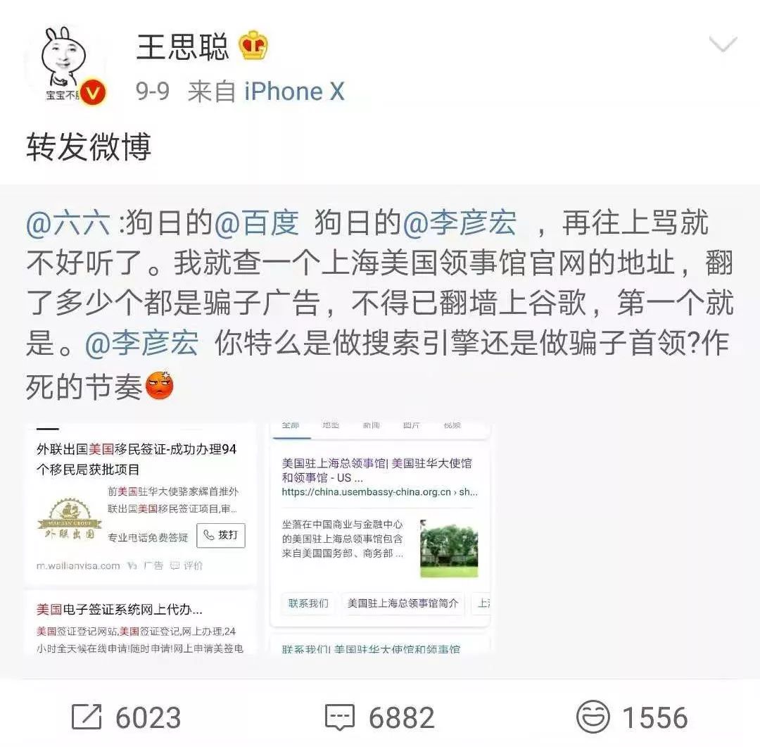 撕满坑满谷广告的百度和李彦宏。