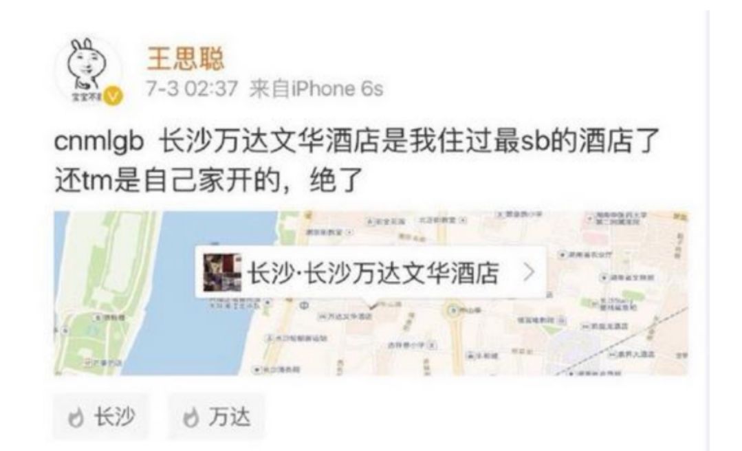 王思聪大战俏江南董事长张兰,也就是汪小菲的妈妈,大S的婆婆,这事算是打响了微博八年撕逼的第一枪。起因是张兰说“儿子儿媳结婚的酒店是王健林免费赞助的”。