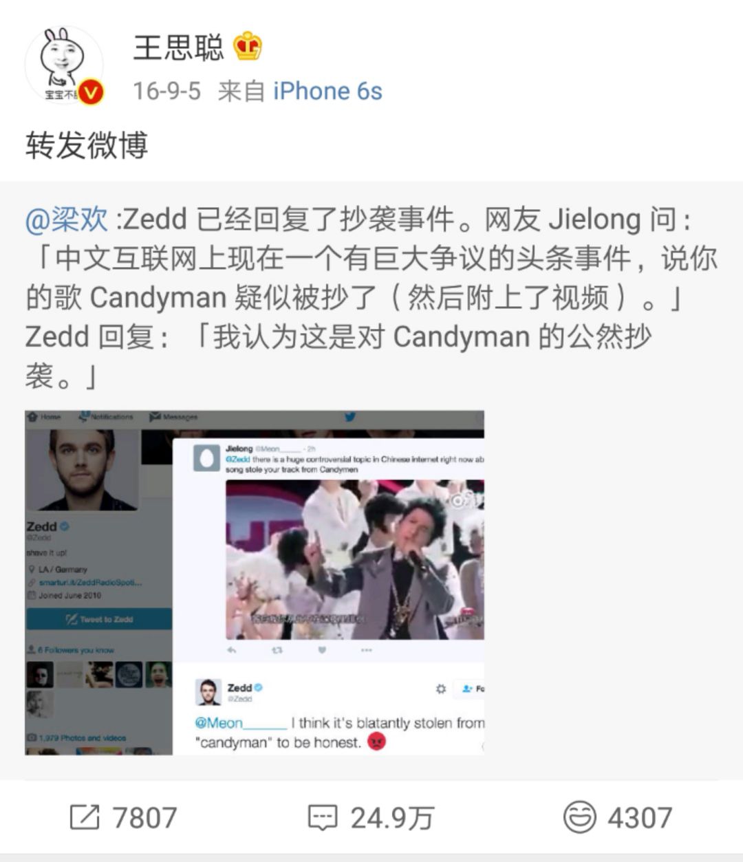 张馨予说:@王思聪,你管的真宽。