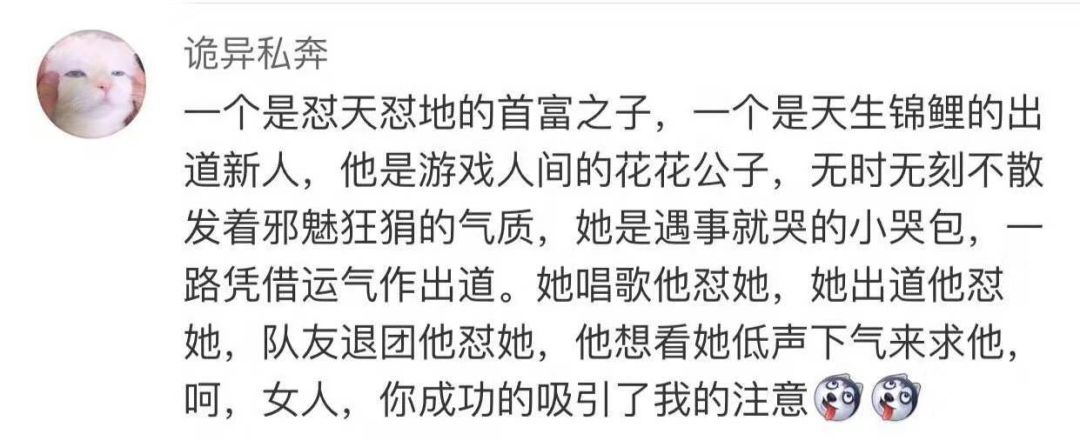dbq插一句话,总觉得黄子韬和王思聪台风越来越像了,也不知道是谁膨胀了。现在大家对王思聪的好感,和当年表情包大战后,对黄子韬的好感也差不多。