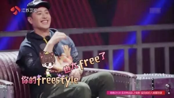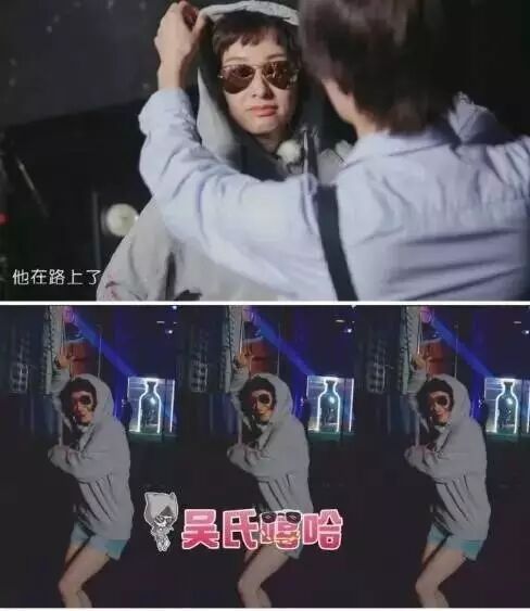 吴昕戴上墨镜穿着连帽衫,假扮成潘玮柏战队的选手空降Hip-Hop舞台。