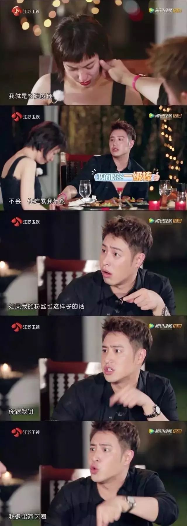 还假装很凶的说,不要提什么连累不连累的,如果我的粉丝也这样子的话,你跟我讲,我退出演艺圈。