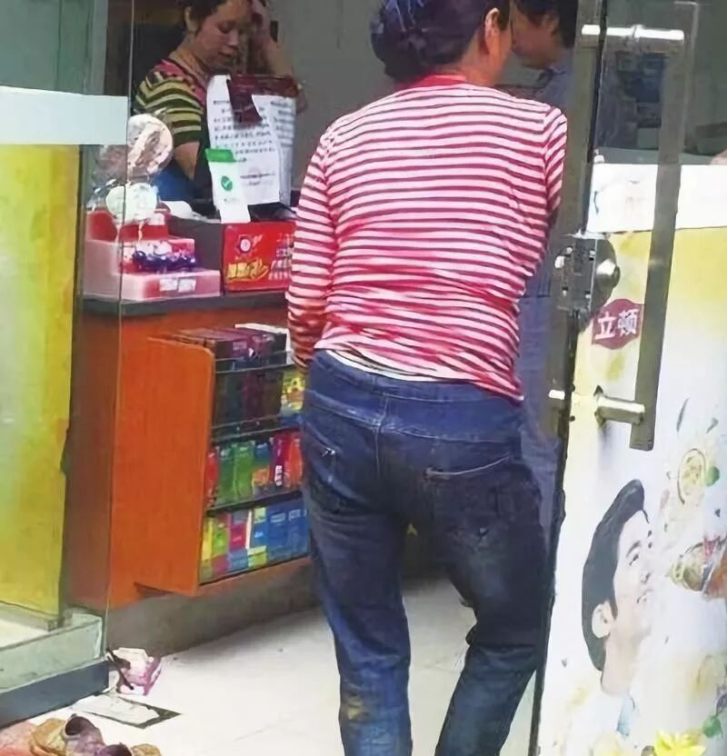 起初,两人想站在门口买东西,在店员反复说劝说下,其中一人才把脚上的泥鞋脱了下来,赤脚进店。