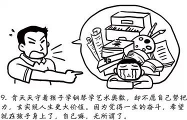 9、肯天天守着孩子学钢琴学艺术奥数,却不愿自己努力,去实现人生更大的价值。因为觉得一生的奋斗和希望都在孩子身上了,自己嘛,无所谓了。