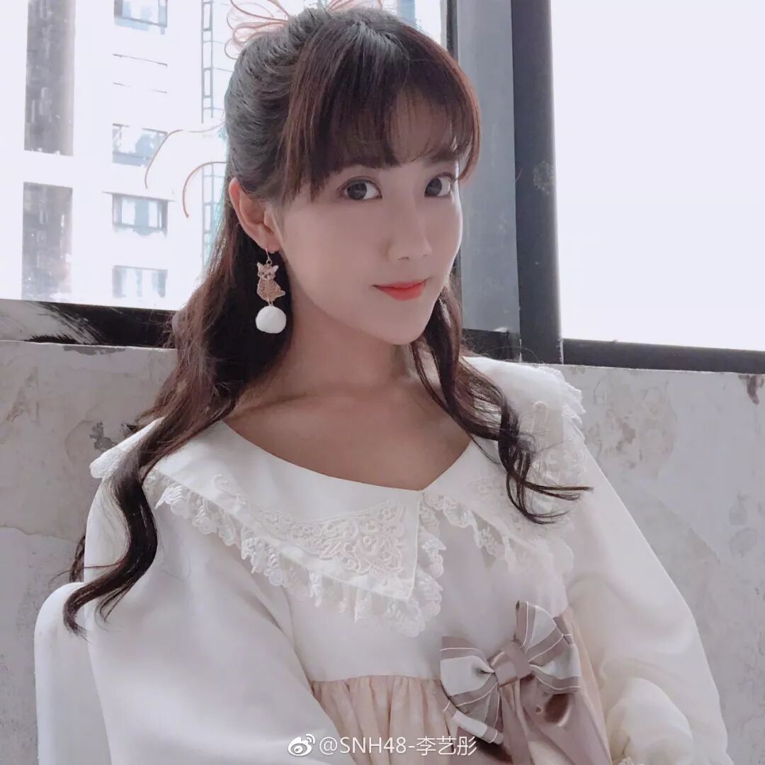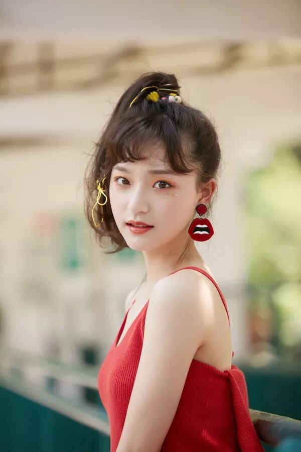 因为李艺彤的脸型本来就属于比较尖的鹅蛋脸,所以这种齐刘海的淑女半扎发更符合她的个人气质,优雅中又带点少女的活泼!