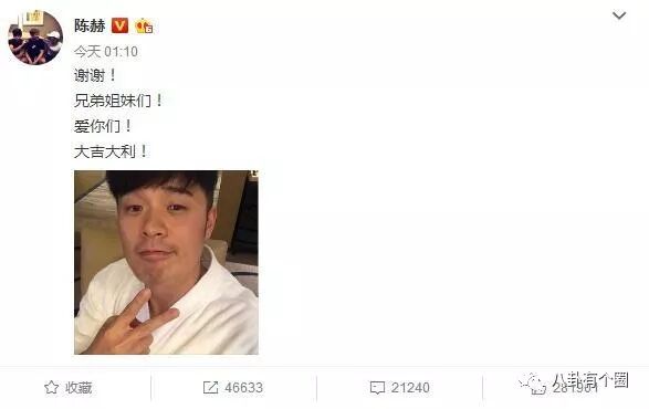 虽然祝福搞怪,但用心真诚!陈赫感动的直落泪~~
