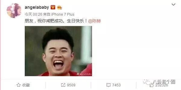 紧跟邓超的脚步,baby在26分,发了这张发福图,直接甩话说祝福减肥成功,简直是哪壶不开提哪壶!