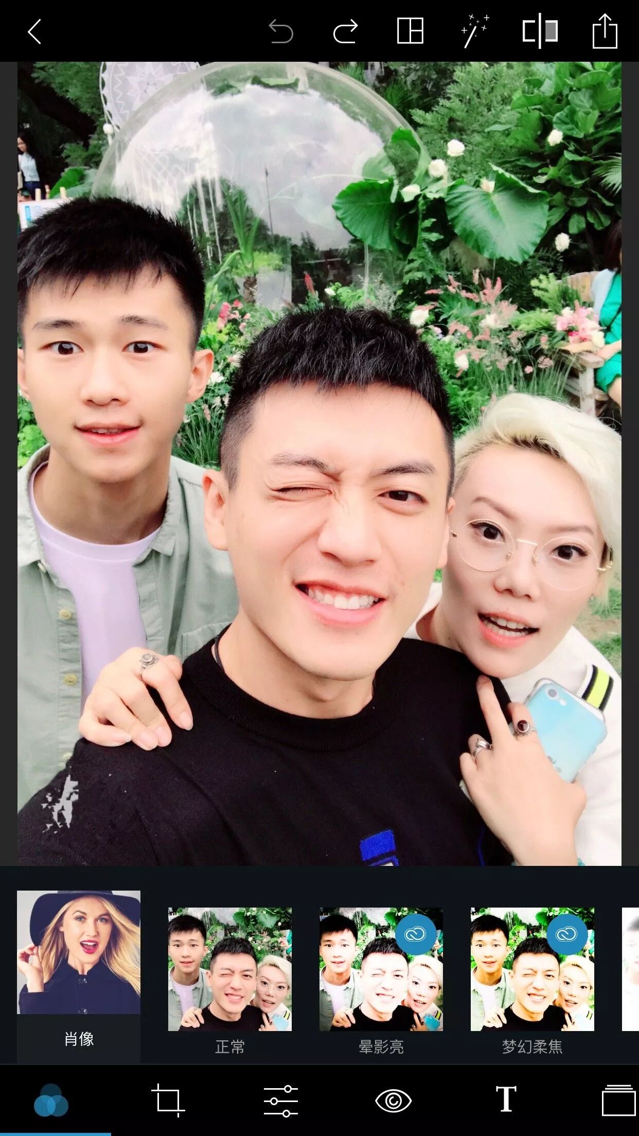 还有一个叫宽屏幕的滤镜,事实证明我还是想多了,大家并没有变成电视机脸,还是黄黄的我们仨。。。