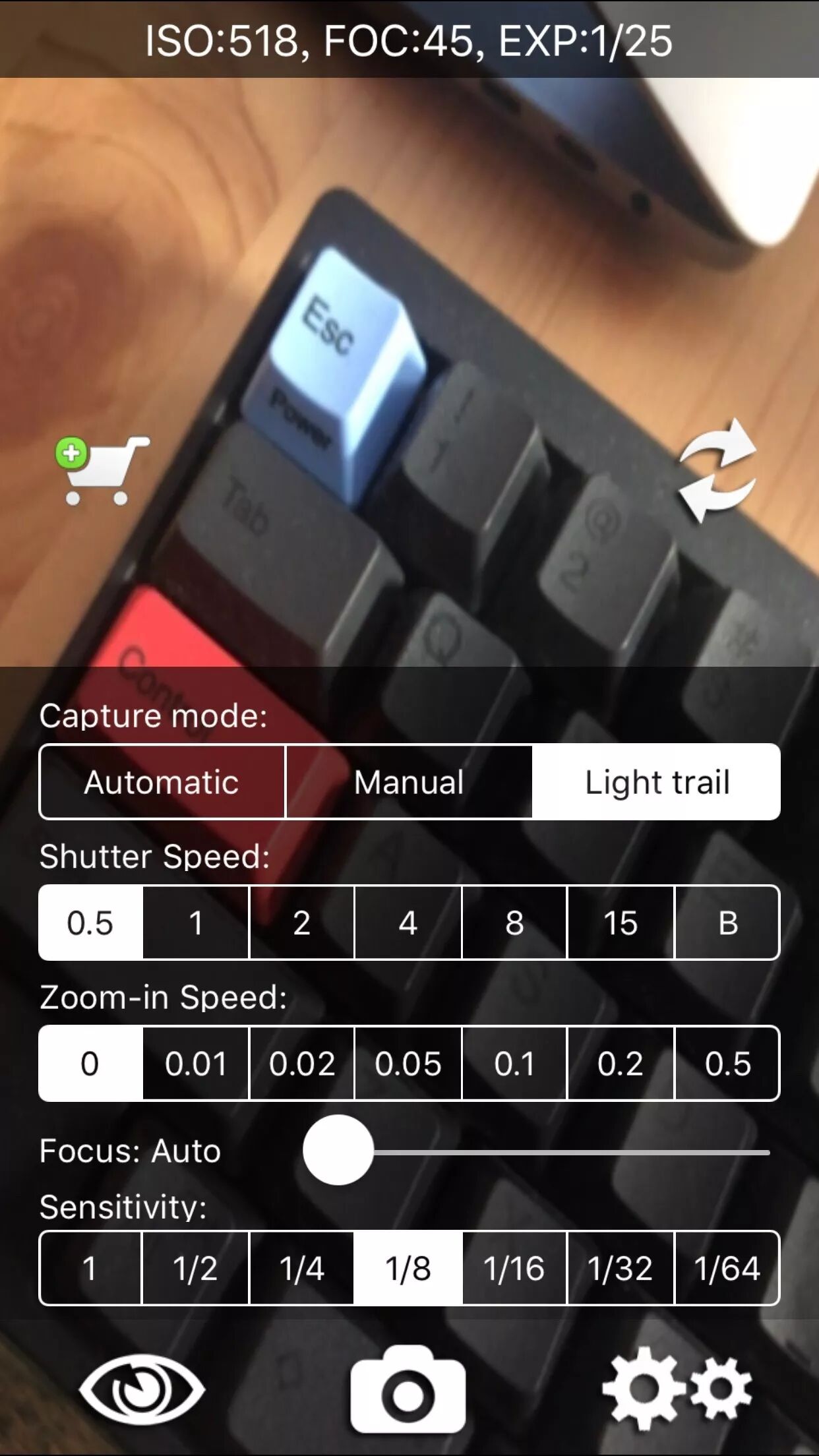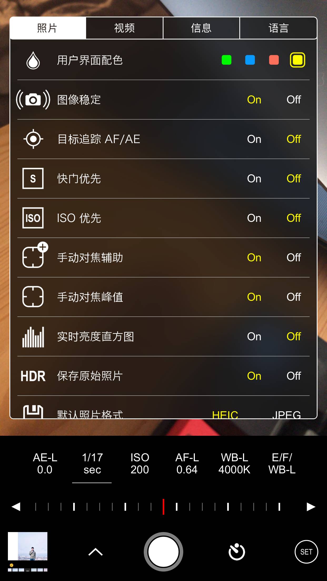 终于说到ProCam了,超级牛的拍照APP,面向的是高阶摄影爱好者。英文按钮+小部分中文菜单=把单反相机搬到了手机里。
