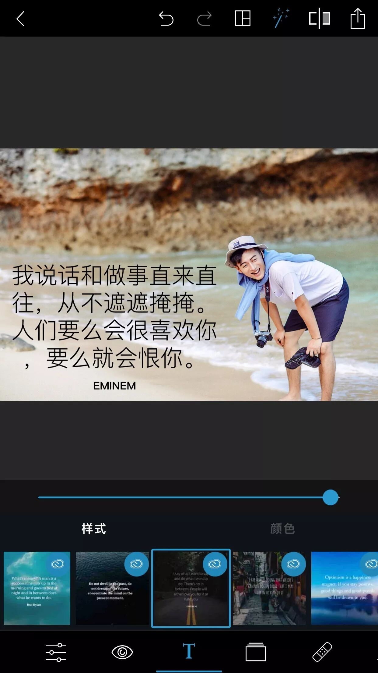 其实人家主攻的是加字啦。大家对印刷体的字,有莫名的好感,啥一般的照片,加上两行字,立马高大上了起来。