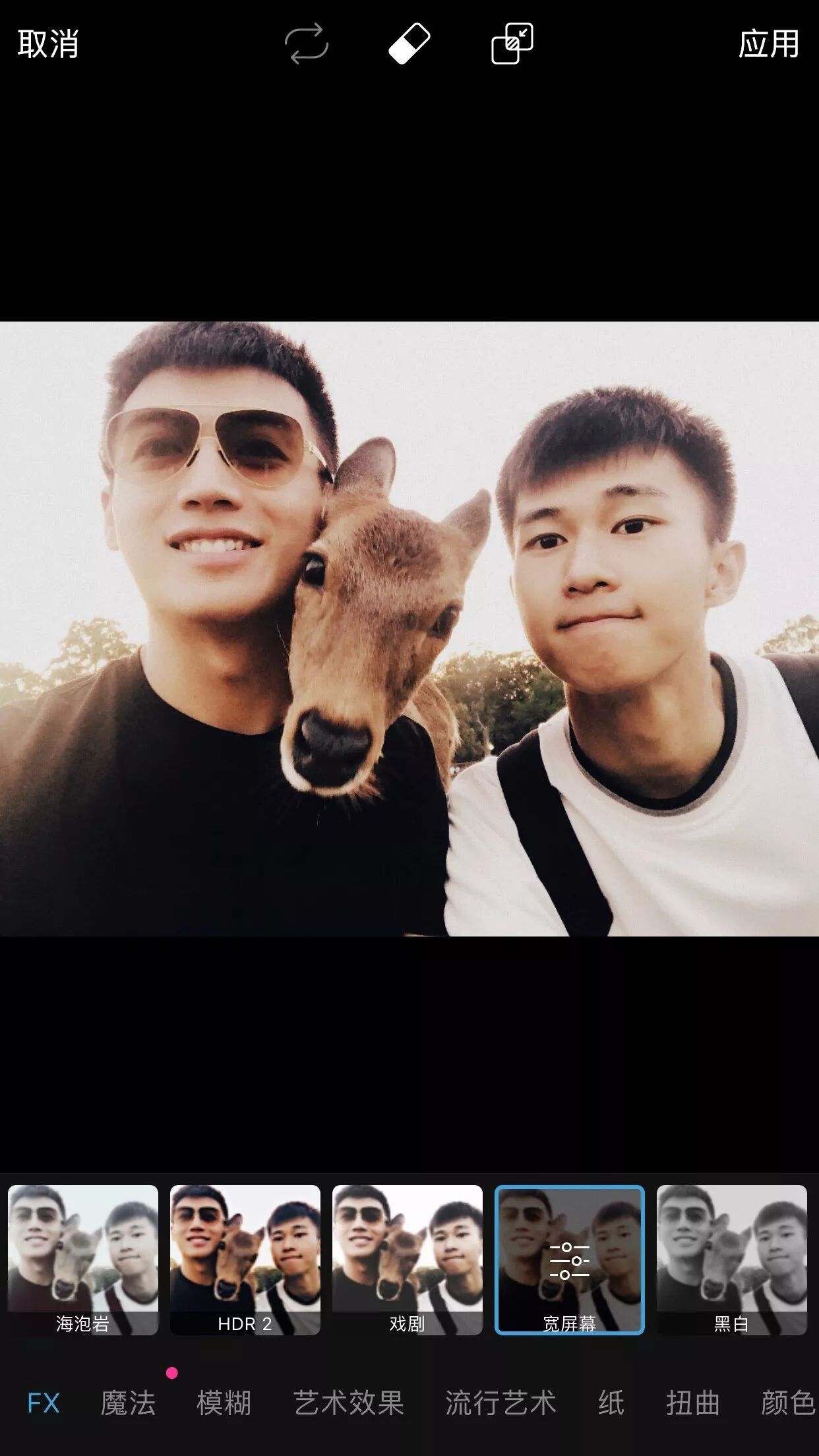 魔法滤镜真的很吸引人打开,超级标题党。打开之后选了一个光切断,好奇怎么切断光啊,难不成是把鹿和杨晗都挡住只留下帅气的我?