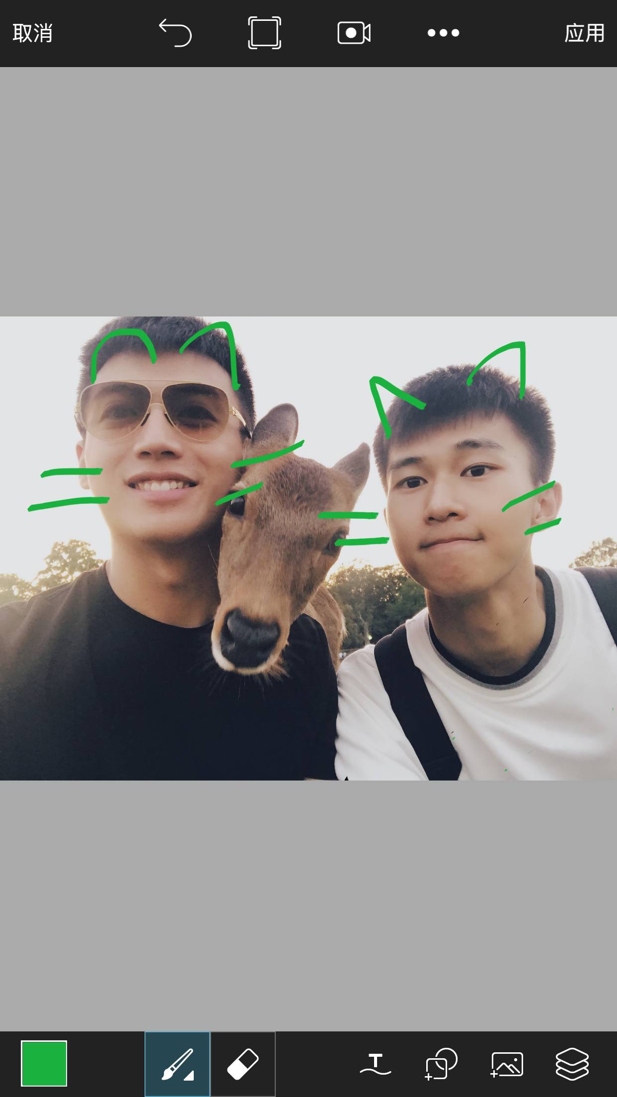 好了,我用画笔功能画两个耳朵总能看出效果来吧!!哼!!