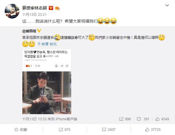 家人朋友、吃瓜群众都替他们开心,就连无辜躺枪的林志......颖也机智表达祝福。▼
