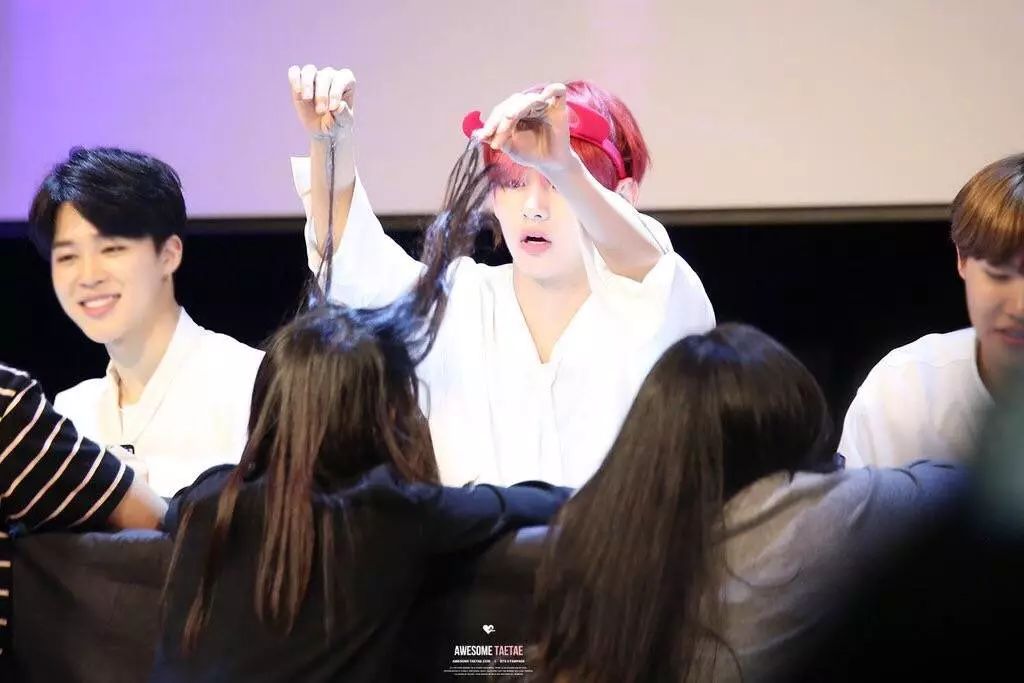 更要命的是,金泰亨是我见过最爱玩女粉丝头发的爱豆,你脱了鞋,摸了脚,然后拽粉丝头发,就算不是同一时间空间,看到图片也有不适的感觉吧。