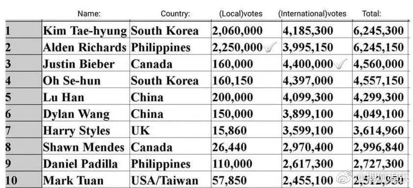 看来金泰亨的盛世美颜是大家公认的了,但是因为这个,金泰亨估计又要被骂一轮,这种排名就是这样,本来毫无意义,可是粉丝们还是会争高下。