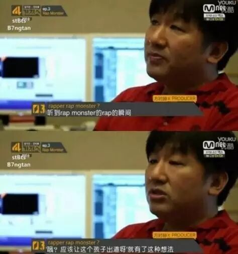 其实,一开始Big Hit的理事方时赫只是听到了Rap Monster。